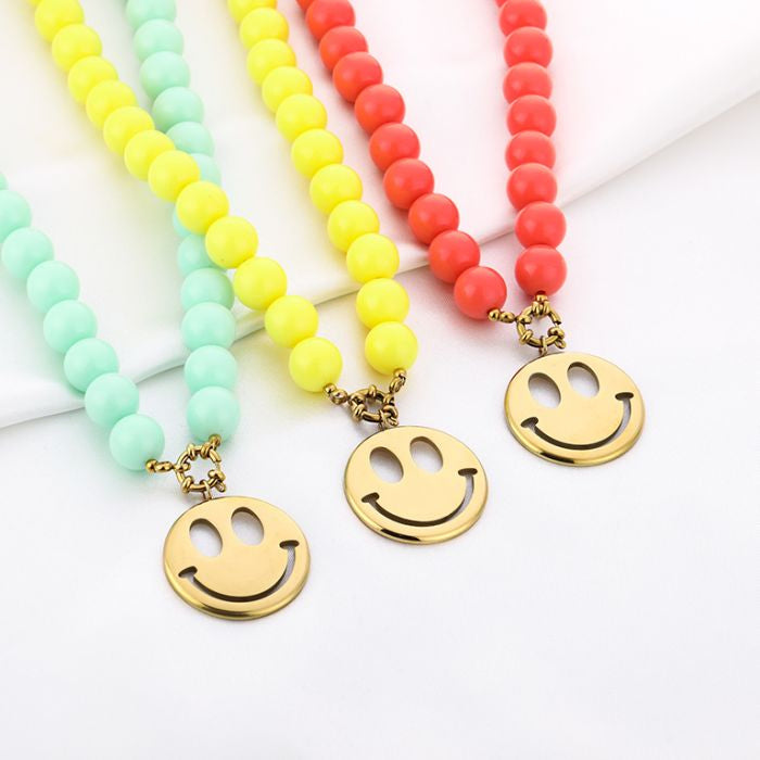 Kralen Ketting met Happy Face - Verschillende Kleuren