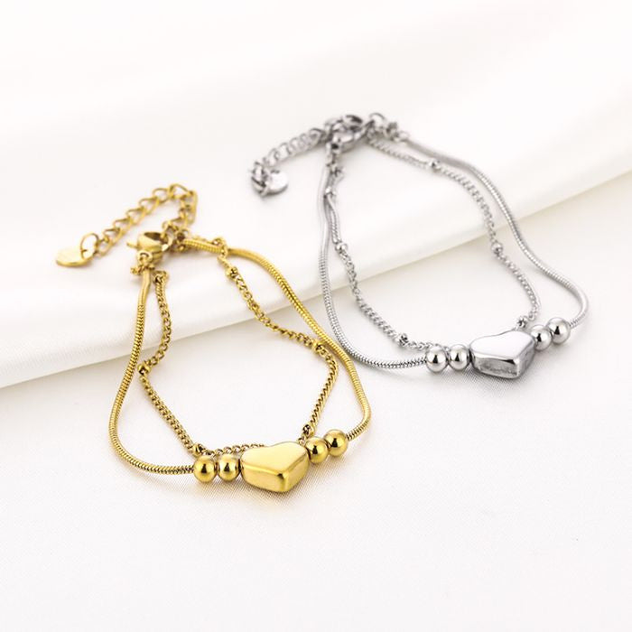 Dubbele Armband met Hartje - Verschillende Kleuren