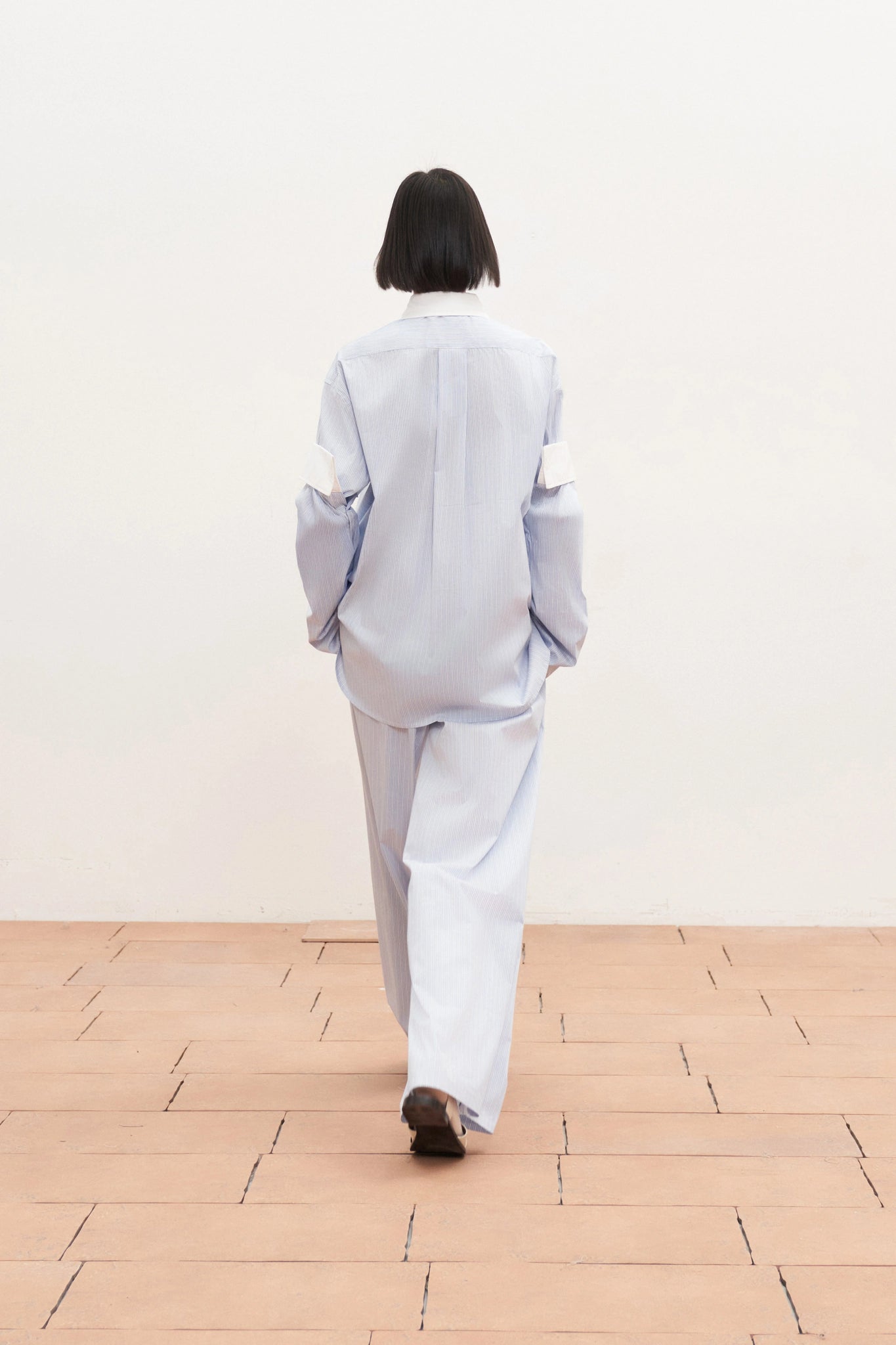 De blouse heeft een klassieke kraag, knoopsluiting en lange mouwen met brede manchetten. Een tijdloos model dat zowel casual als chic te combineren is.