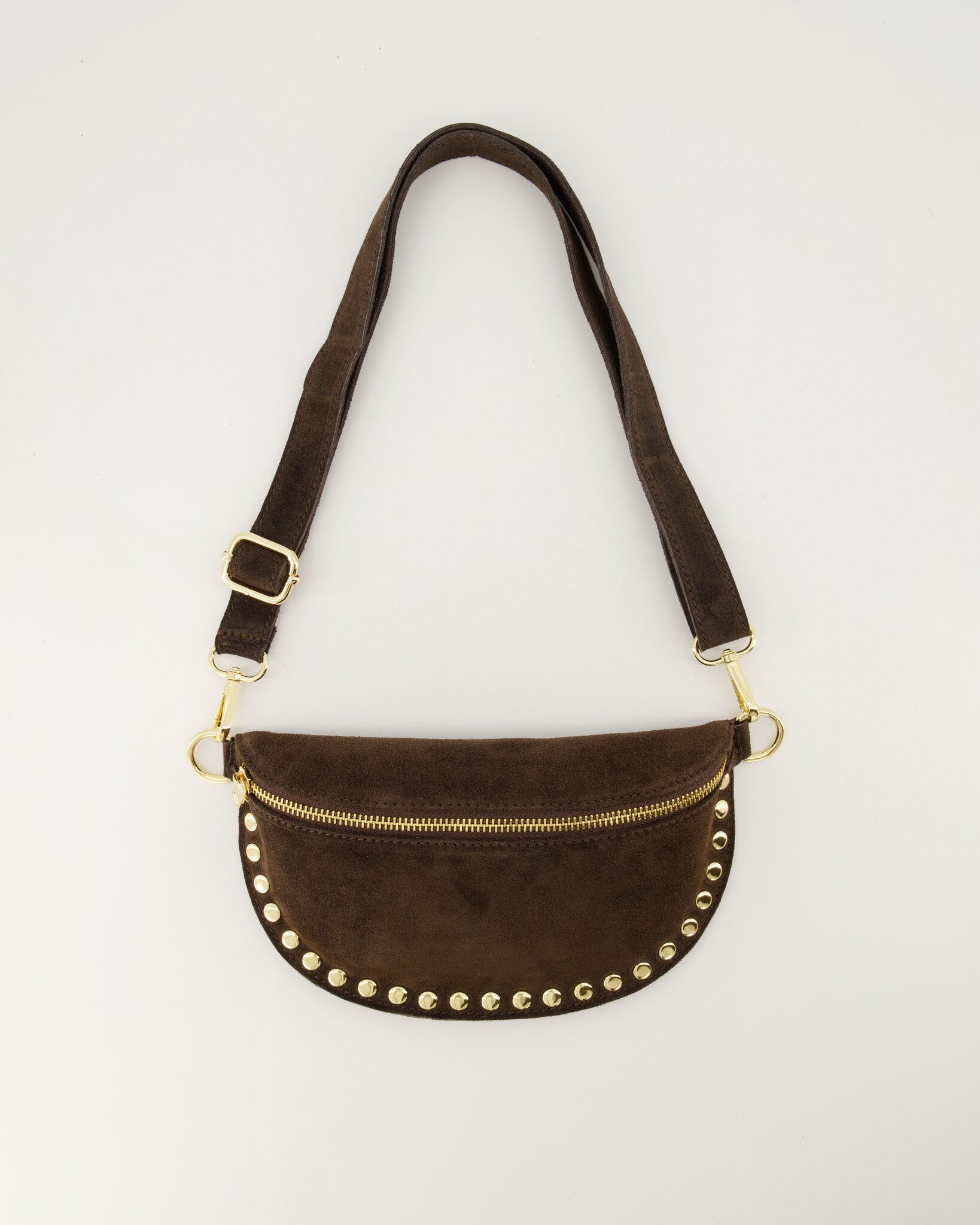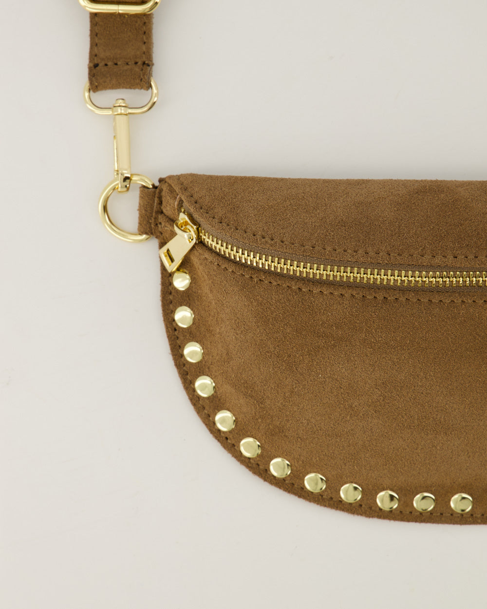 Debby is een leren heuptas die ook als crossbody tas gedragen kan worden. De Debby heuptas heeft een binnenvak en een steekvak met een afneembaar en verstelbaar leren hengsel. De tas is afgewerkt met studs en goudkleurig hardware.